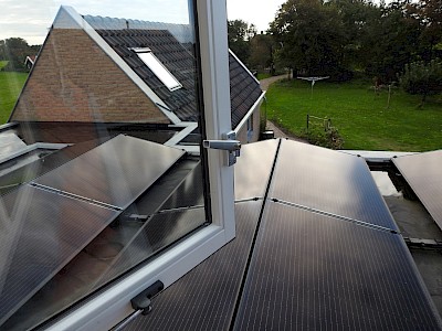 De warmtepomp verwarmt twee boilers: een van 40 graden voor de vloerverwarming en een van 60 graden voor de het warme water. “Het functioneert hartstikke goed”, zegt Anne. “Voor de stroomvoorziening liggen er zestien zonnepanelen op het dak. Dat is net niet voldoende: het jaar 2020 hebben we gemiddeld zo’n 40 euro per maand aan stroom bij moeten kopen.” Anja: “Maar het is een groot verschil met de 250 euro die we anders kwijt zouden zijn.”