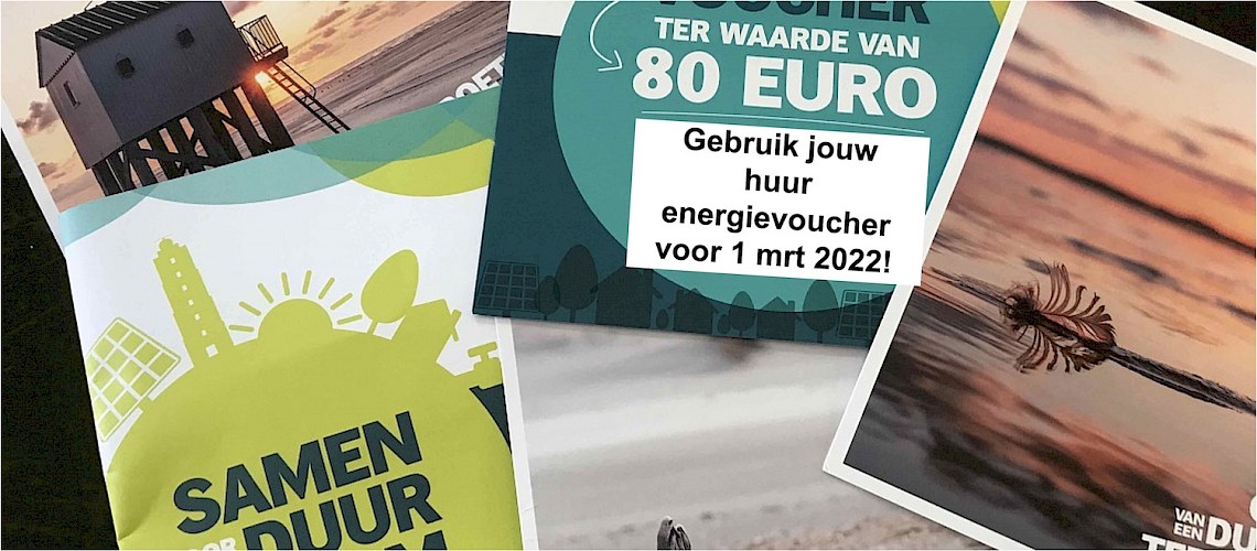 Eilanders die een woning huren op Terschelling komen in aanmerking voor een energievoucher ter waarde van 80 euro, vergezeld van een informatief boekje over energiebesparing. Ben je huurder bij de woningstichting, dan heb je dit pakketje vorig jaar in de brievenbus gekregen. Particuliere huurders kunnen een mailtje naar de gemeente sturen om dit boekje te ontvangen.