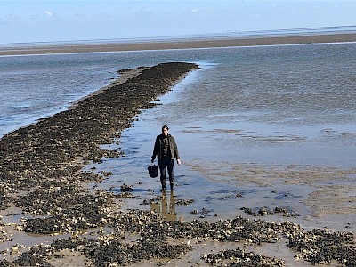 Of ga een keertje met laag water het Wad op. “Want wat is er feestelijker dan een maaltje oesters op tafel te zetten? En die groeien hier gewoon, in overvloed. Je mag als particulier 10 kilo per jaar plukken, daar kom je een heel eind mee. En het is hartstikke leuk om te doen.” Al merkt ze dat niet iedereen er zo over denkt. “Rond de kersttijd heb ik ze ook in onze viswinkel op West liggen. Dan komen zelfs eilanders ze halen. Als ik vraag ‘Maar je weet ze toch te vinden?’, is het antwoord vaak ‘Ja, maar daar heb ik geen zin in.’ Tuurlijk, je moet er wat voor doen, maar daardoor smaakt het vaak ook een stuk lekkerder, vind ik.” En over de winkel gesproken: “Soms zie ik kinderen vol afgrijzen naar zeebaars kijken, want daar zit wat bloed aan. Maar kibbeling lusten ze wel.” Lachend: “Alsof kibbeling in blokjes door de zee zwemt.”